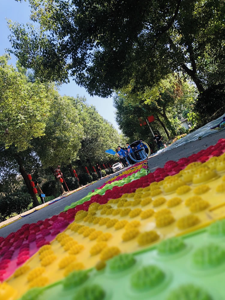 女生也是毫不畏懼在指壓板上奔跑起來。