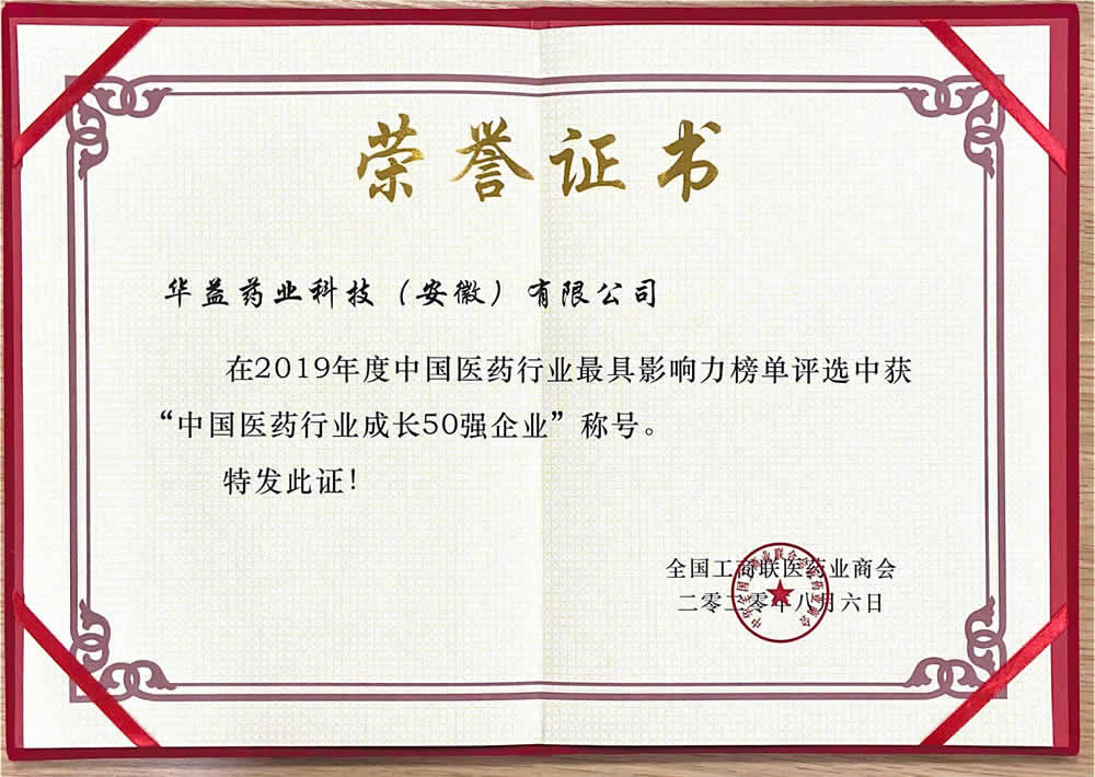 中國醫(yī)藥行業(yè)成長50強企業(yè)